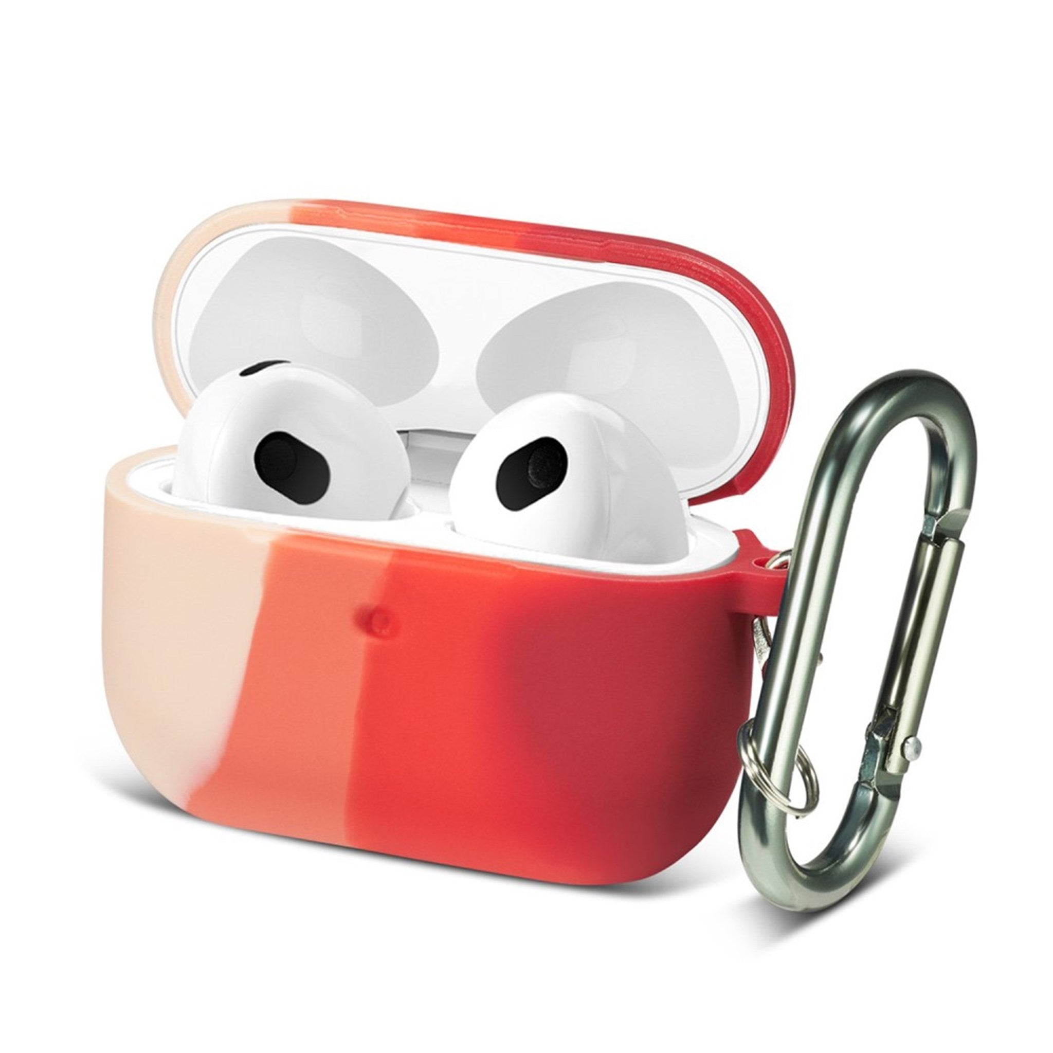 Tęczowe silikonowe etui gradientowe AirPods 3 z karabińczykiem - Różowe / Ciemnoczerwone
