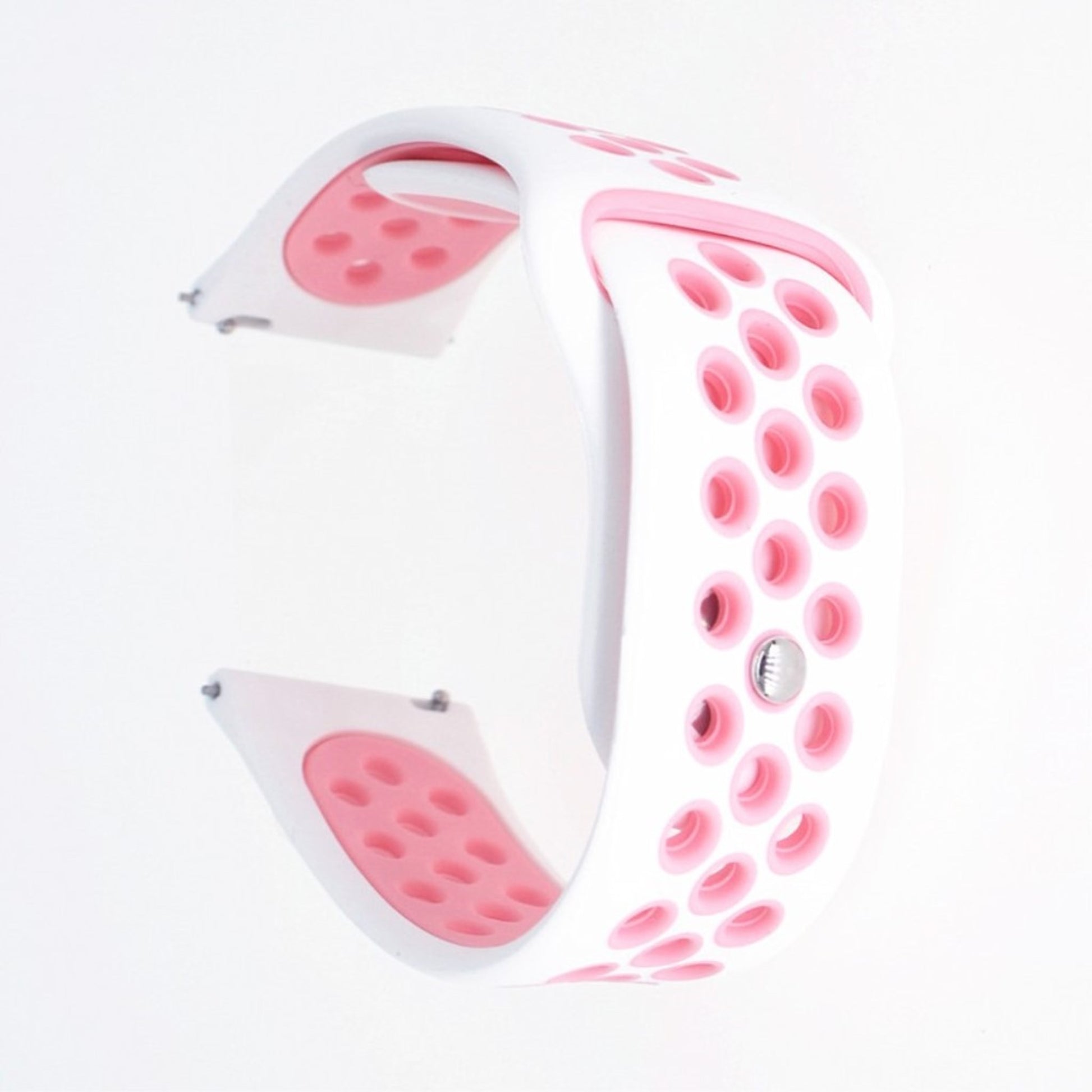 Uniwersalny dwukolorowy silikonowy pasek do zegarka 20 mm - Biały/Różowy