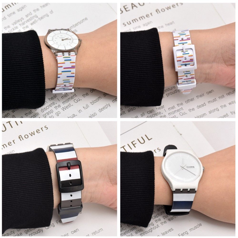 Uniwersalny silikonowy pasek do zegarka z nadrukiem w paski 17 mm - Czarny / Biały Pasek