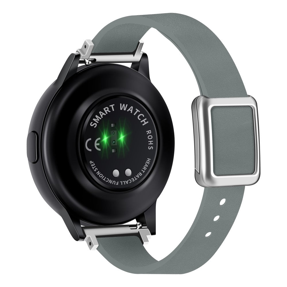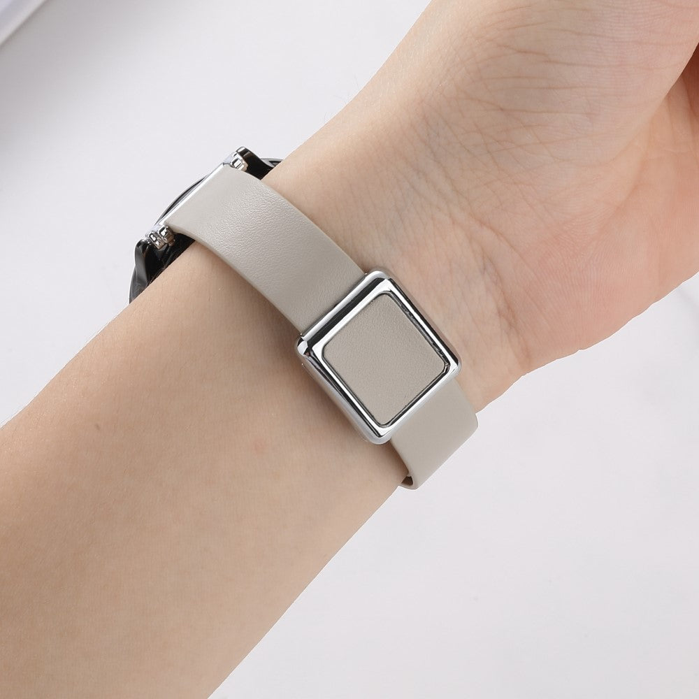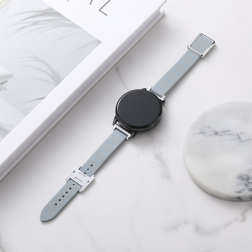 Uniwersalny skórzany pasek do zegarka Samsung Galaxy Watch 20 mm z magnetyczną składaną klamrą - Lniany Niebieski / Srebrna Klamra I Klamra W Kolorze Różowego Złota