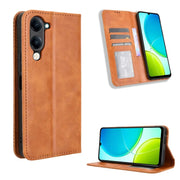 vivo Y29s 5G / vivo Y04 4G Retro Vegan Leather Case Phone Wallet Stand Cover - Brązowy