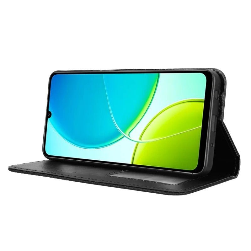 vivo Y29s 5G / vivo Y04 4G Retro Vegan Leather Case Phone Wallet Stand Cover - Czarny