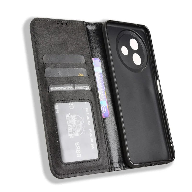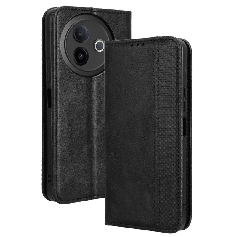 vivo Y39 5G Retro Vegan Leather Case Phone Wallet Stand Cover - Czarny