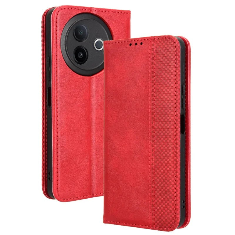 vivo Y39 5G Retro Vegan Leather Case Phone Wallet Stand Cover - Czerwony