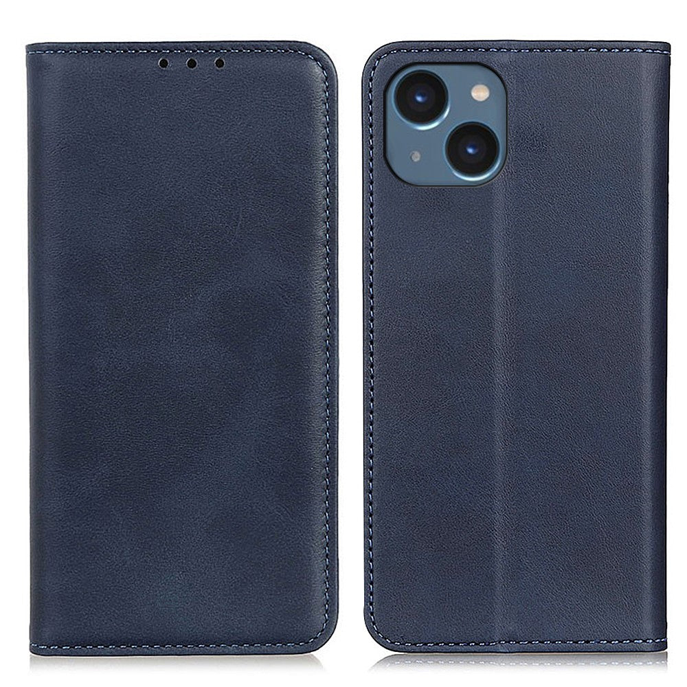 Wallet-style genuine leather flipcase for iPhone 15 Plus - Blue