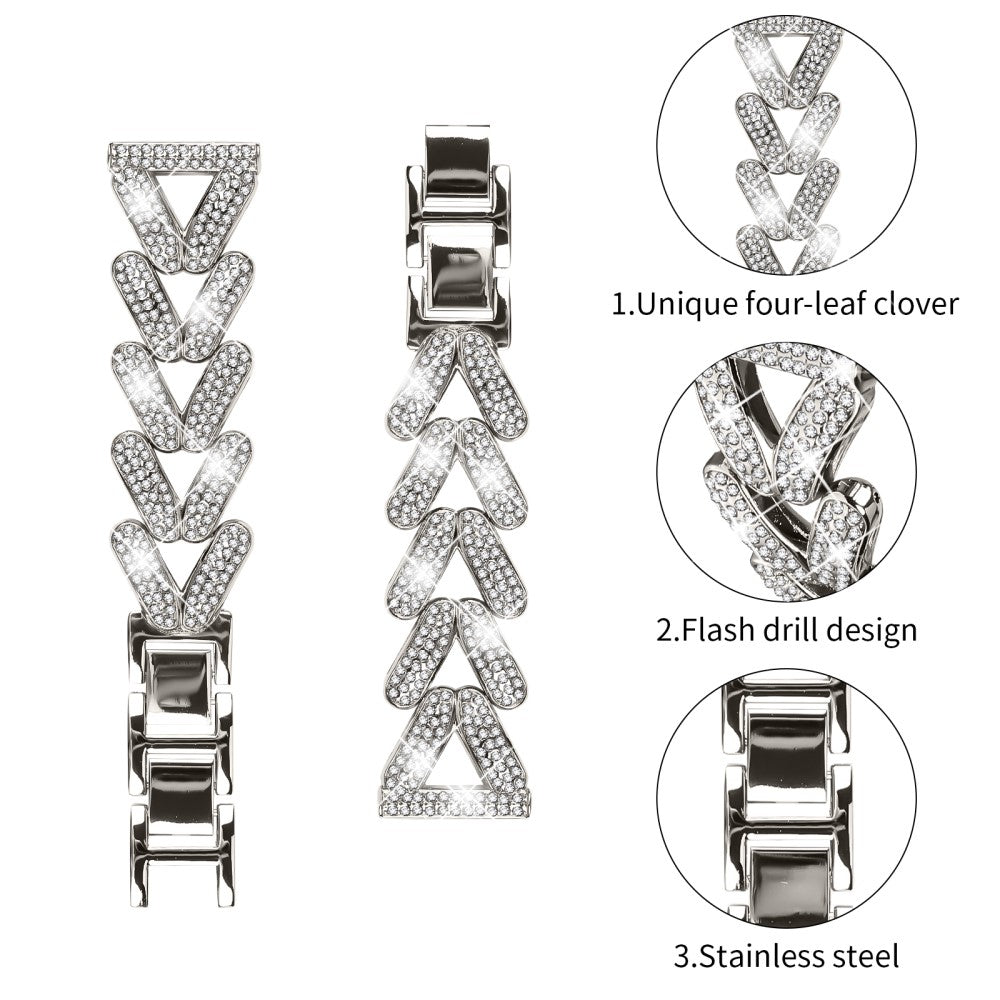 Wymienny pasek do zegarka Samsung Galaxy Watch Active2 44 mm / 40 mm z metalowym, zakręconym paskiem i ozdobą z kryształu górskiego - Starlight