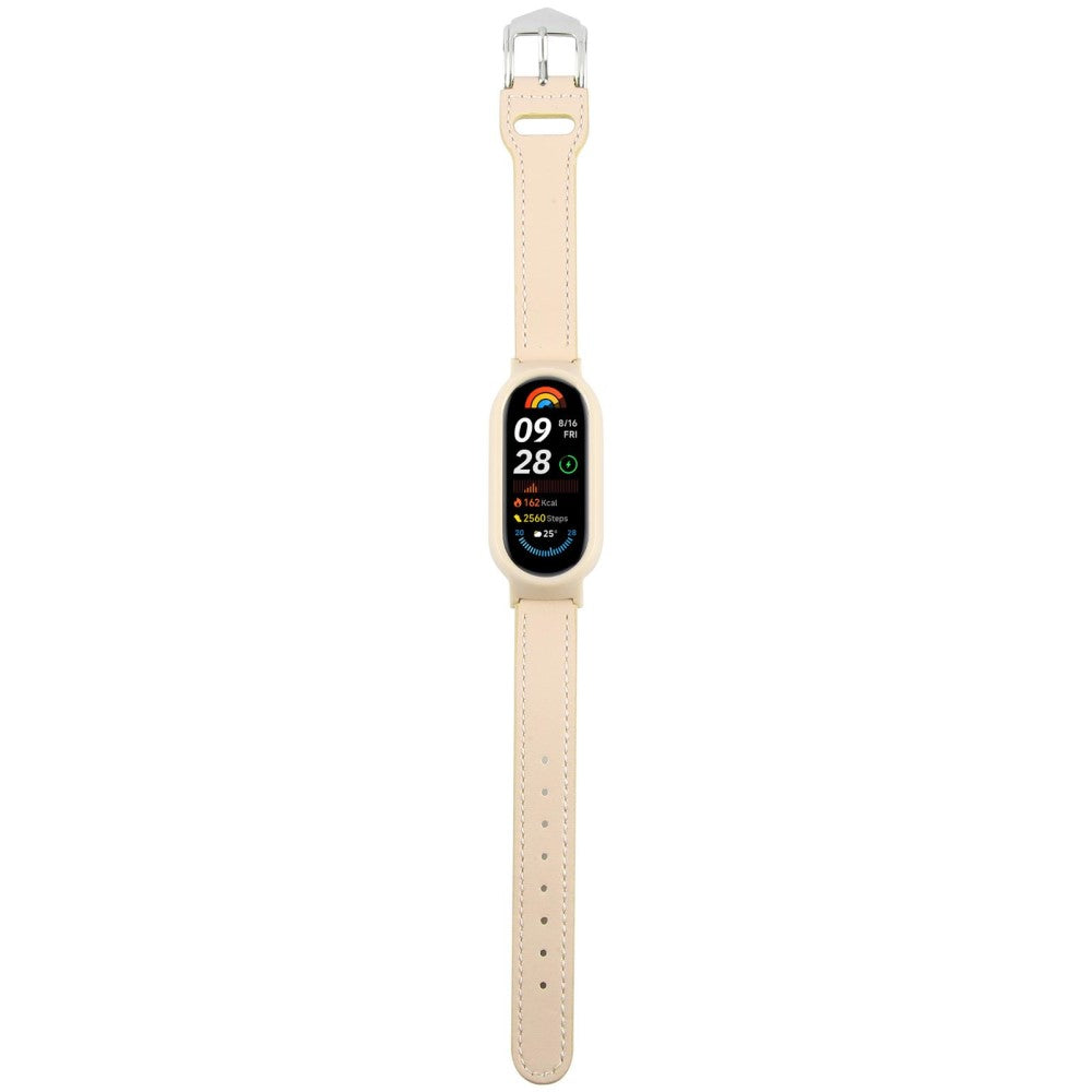 Xiaomi Smart Band 9 Odporne na uderzenia etui do zegarka Zintegrowany skórzany pasek do zegarka z szybkim uwalnianiem - Beżowy / Retro Biały