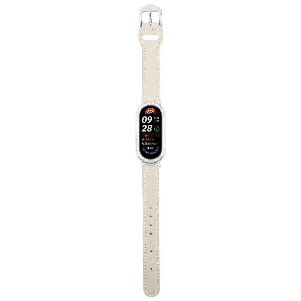 Xiaomi Smart Band 9 Odporne na uderzenia etui do zegarka Zintegrowany skórzany pasek do zegarka z szybkim uwalnianiem - Przezroczysty / Beżowy