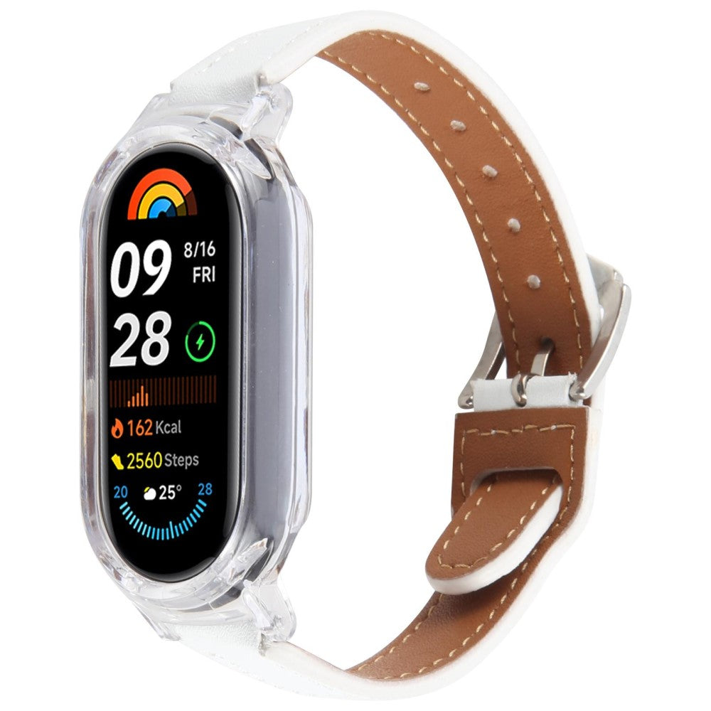 Xiaomi Smart Band 9 Odporne na uderzenia etui do zegarka Zintegrowany skórzany pasek do zegarka z szybkim uwalnianiem - Przezroczysty / Biały