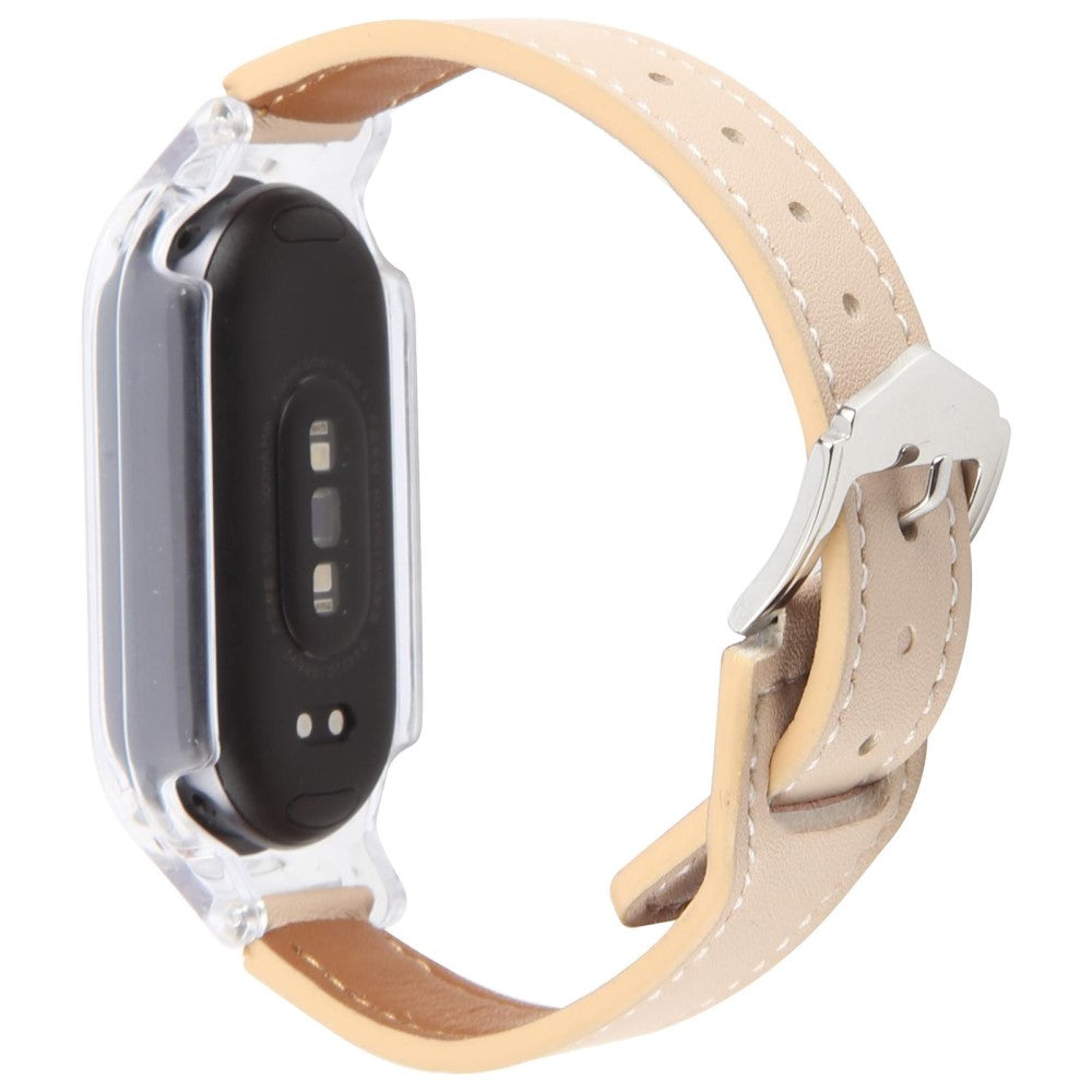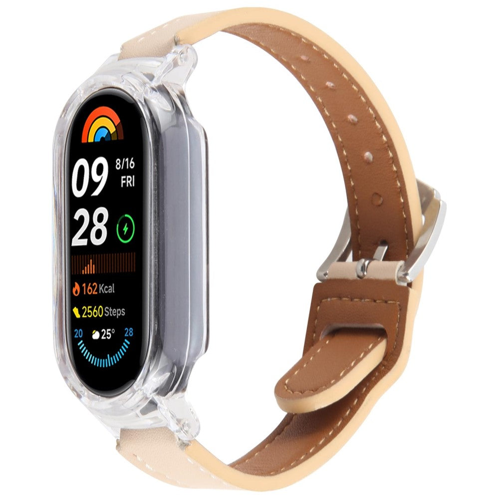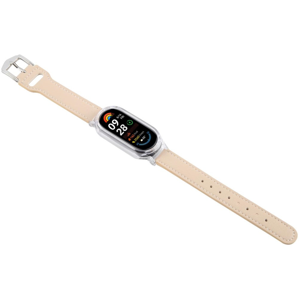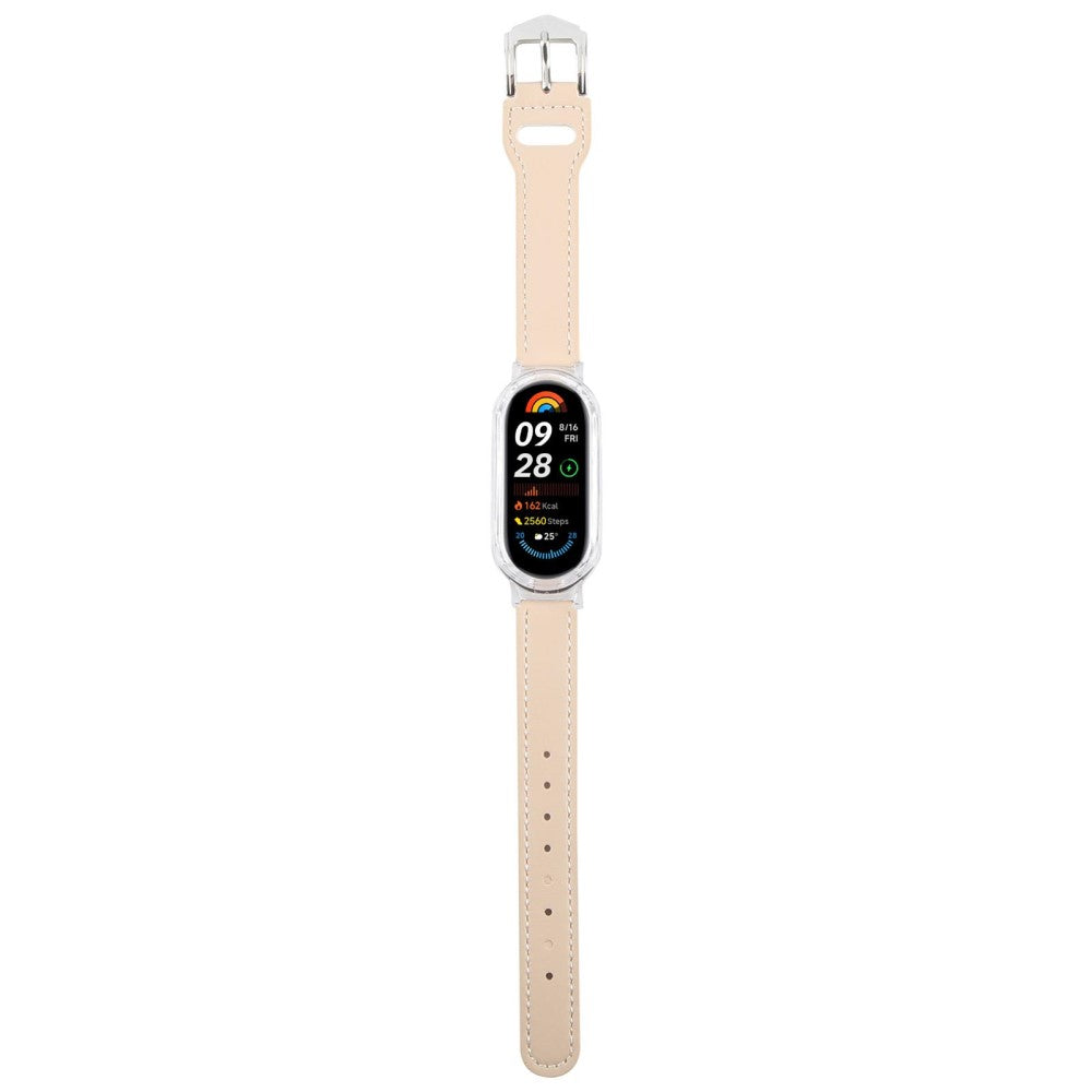 Xiaomi Smart Band 9 Odporne na uderzenia etui do zegarka Zintegrowany skórzany pasek do zegarka z szybkim uwalnianiem - Przezroczysty / Retro Biały