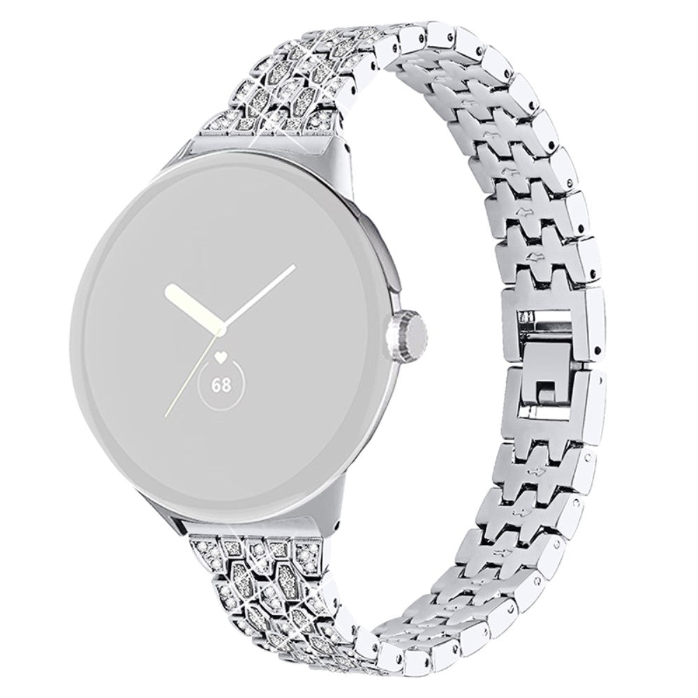 Zegarek Google Pixel Watch z metalowym paskiem ozdobionym kryształkami górskimi - Srebrny/Przezroczysty